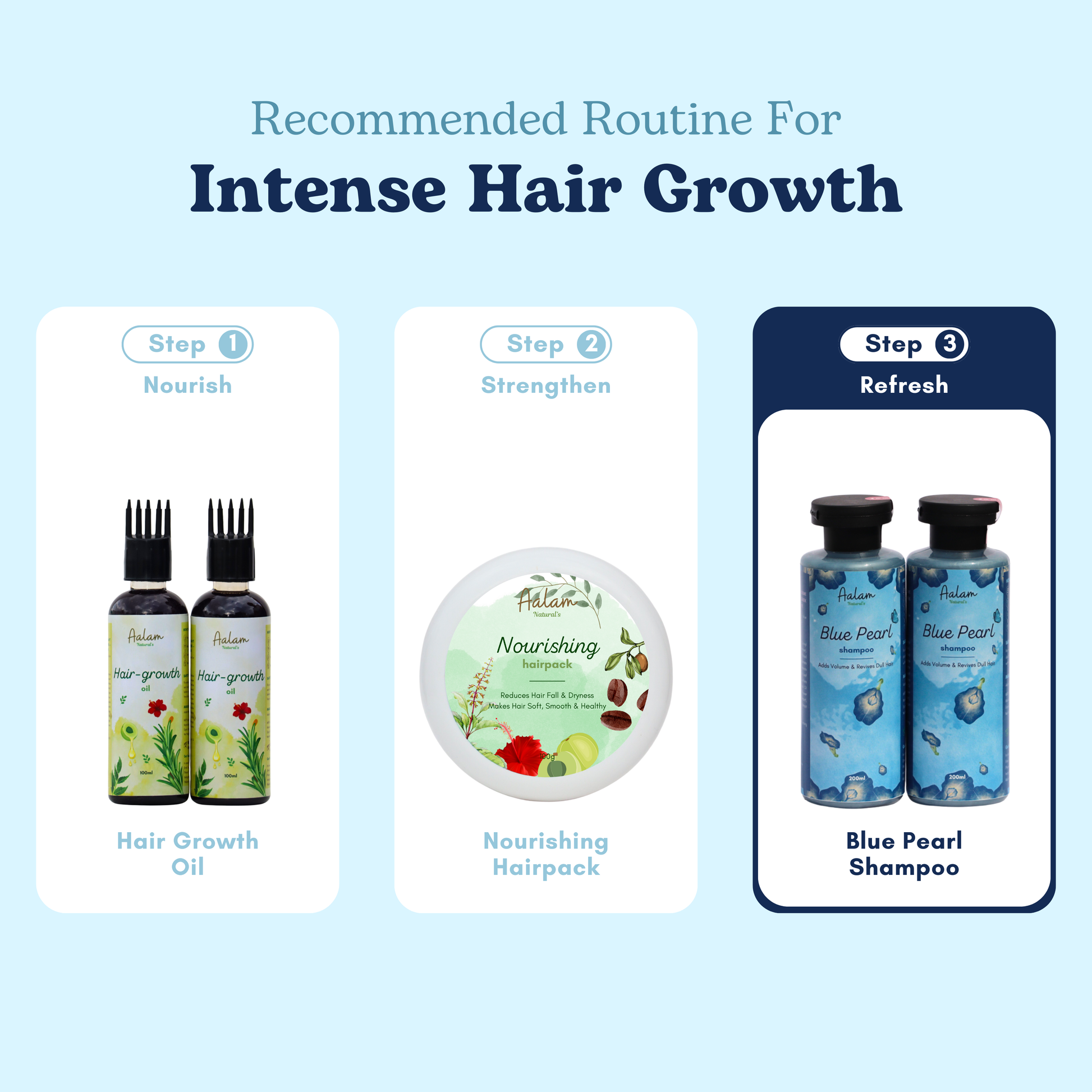 Massage your scalp with Aalam hair oil a few hours before shampooing and use Aalam Hair pack to reduce dryness and frizz.